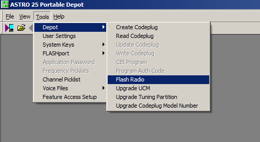3. Open DEPOT. Go to the menu Tools – Depot – Flash Radio: