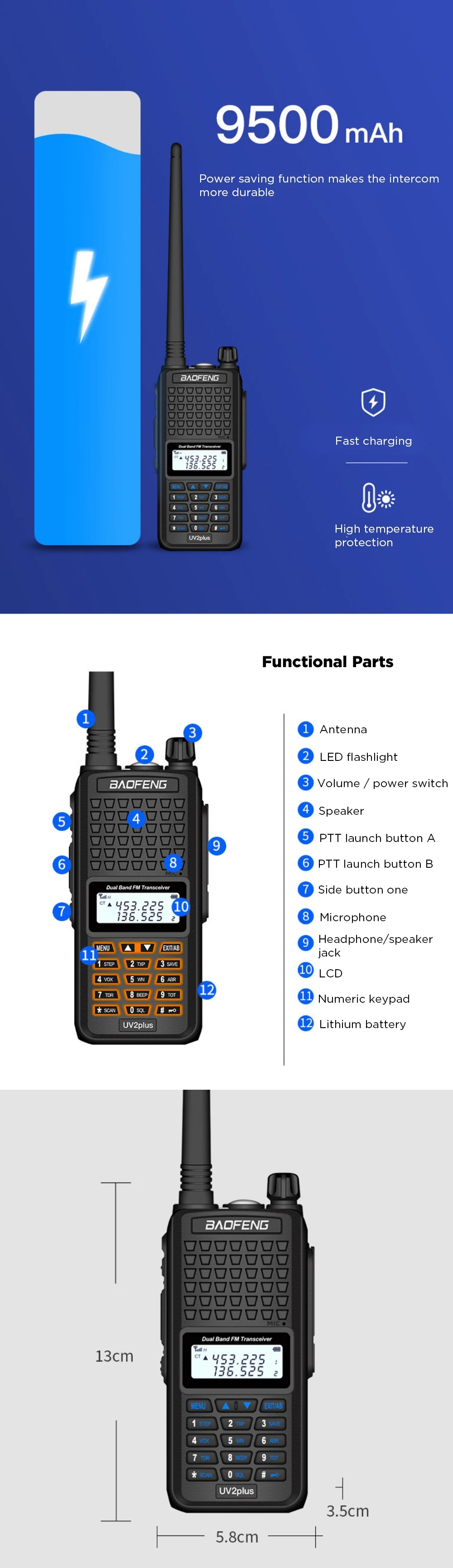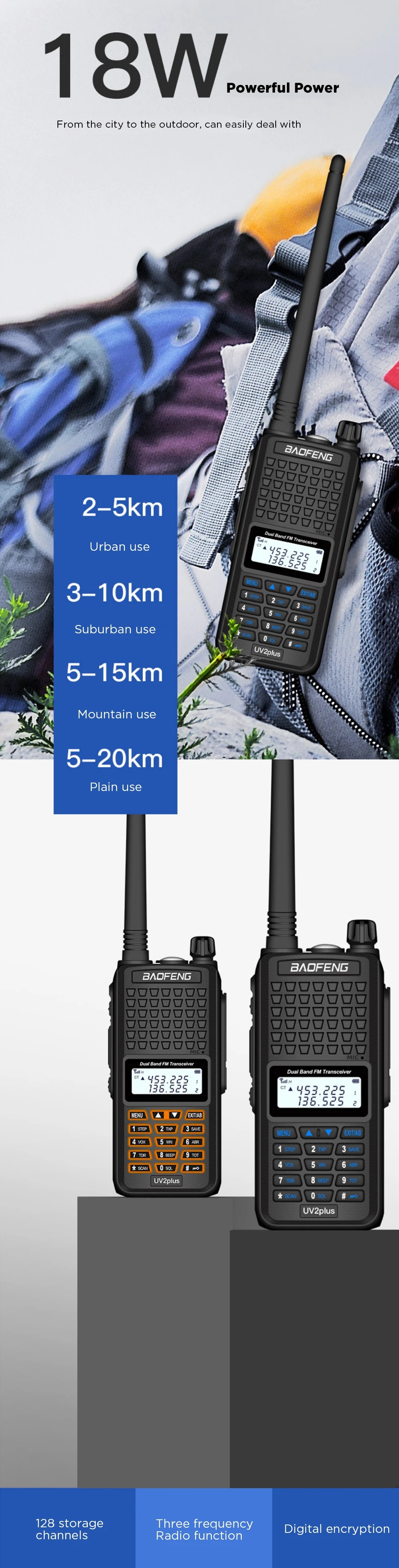 / Baofeng BF-UV2Plus Walkie Talkie Long Range 10km Dual Band Waterproof HF Transceiver UHF VHF UV2Plus Radio