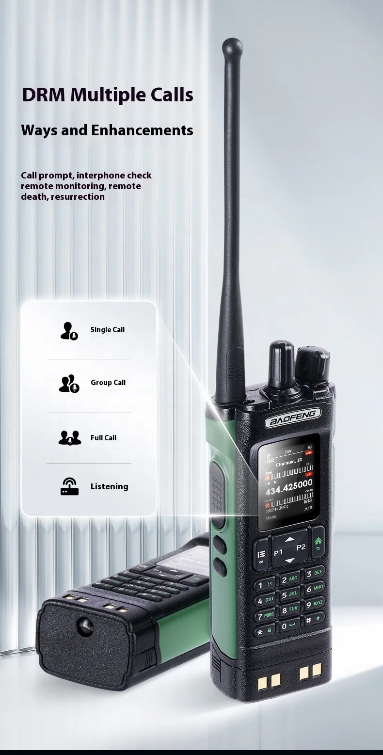 Handy Baofeng DM-32UV 10W Multi band UHF VHF DMR Digital & analog AM FM radio satellite positioning TDMA dual time slot One-key frequency binding in analog mode digital monitoring channel and frequency scanning two way radio walkie talkie