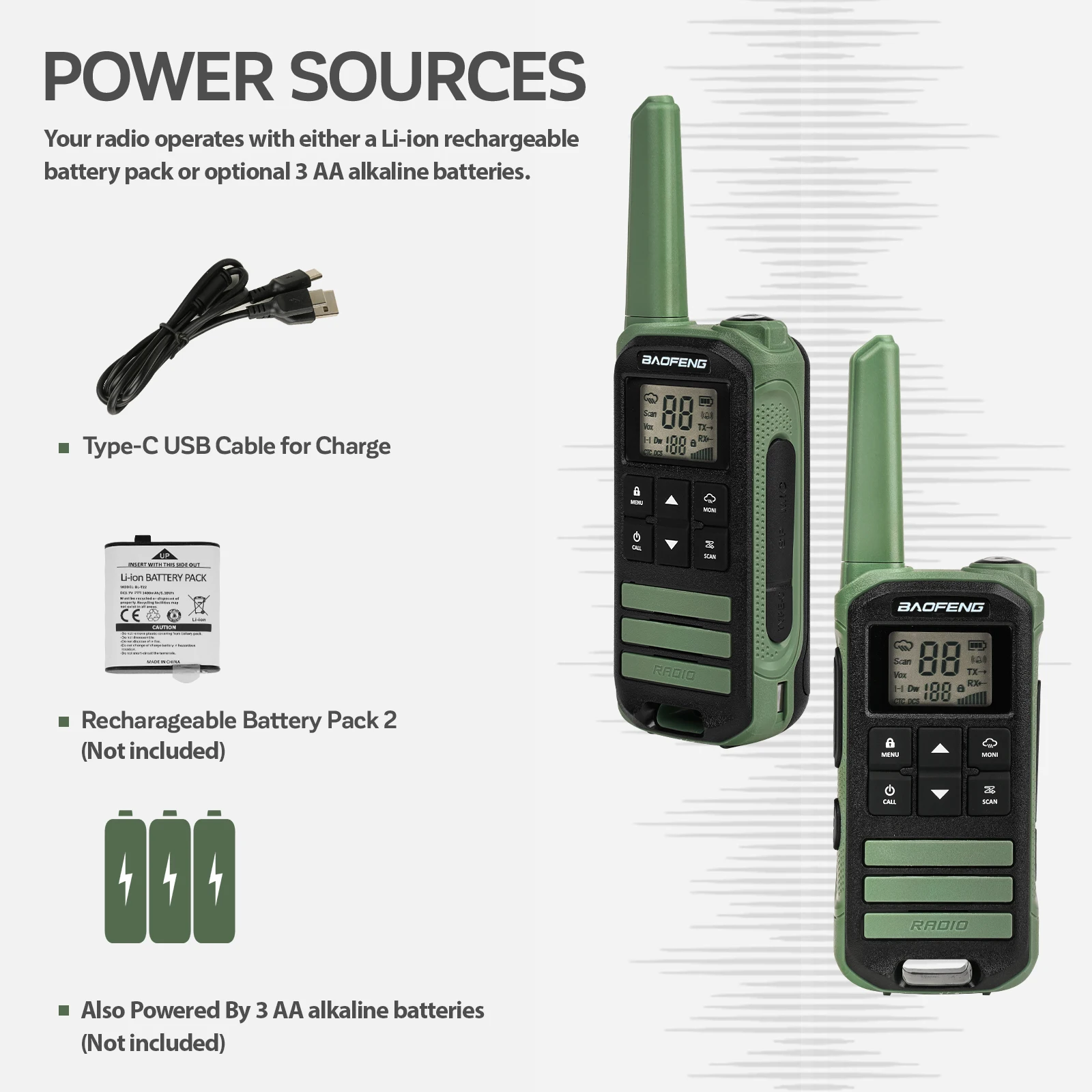 / 3 pcs Baofeng FR-22A FRS 462MHz Mini Walkie Talkie For Sport Hiking NOAA
