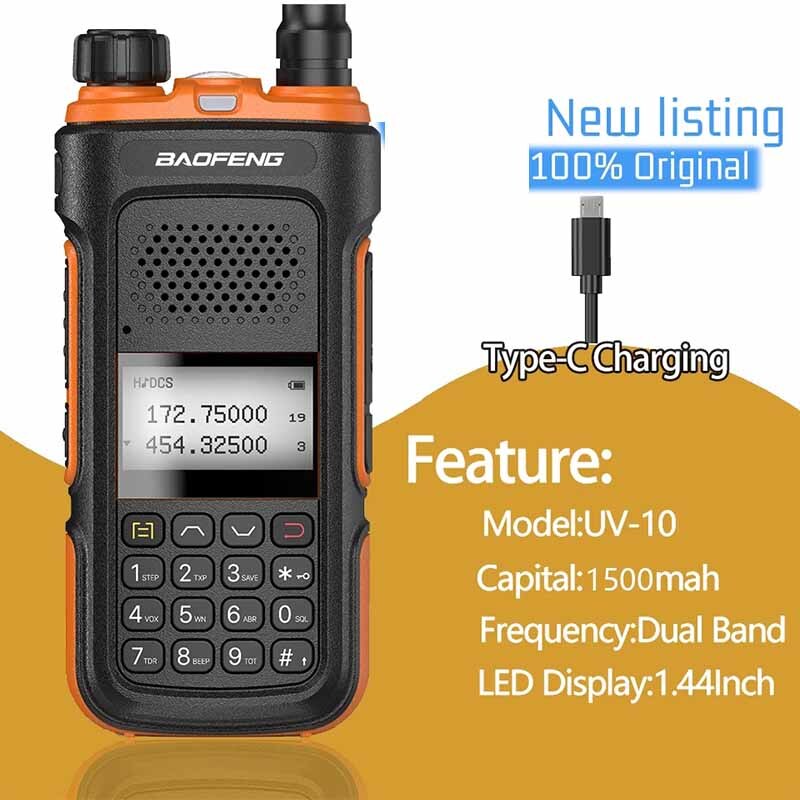 Baofeng UV-10 UHF VHF Dual Band Walkie Talkie Type-C Charging Long Range Two Way Radio