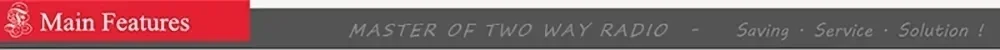 • Scanner function: VFO scan range setting, three scan recovery methods, channel scan, CTC/DCS scan, scan channel addition and removal