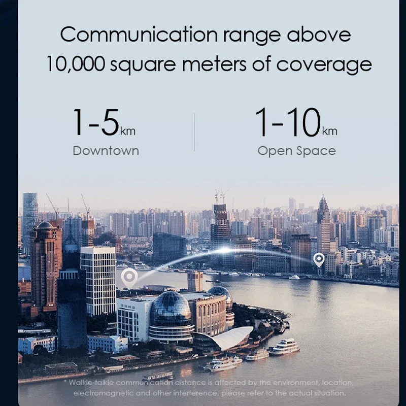 In open areas such as flat land and unobstructed suburbs, the communication distance can be up to 4-10 miles; in the forest, the call distance can be up to 3-4 miles; in the city, the callable distance can be up to 2-3 miles (the callable distance is determined by the real environment).