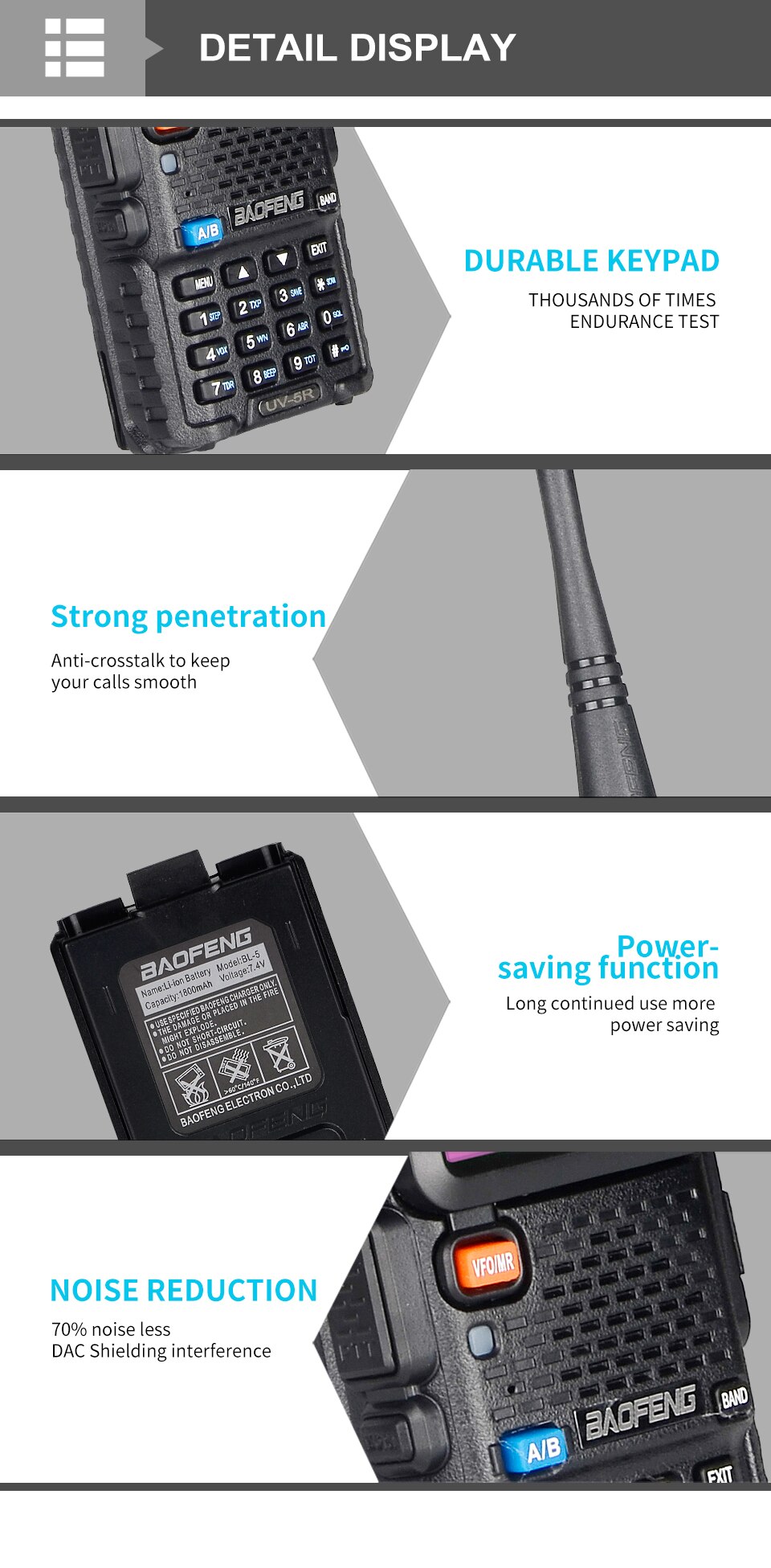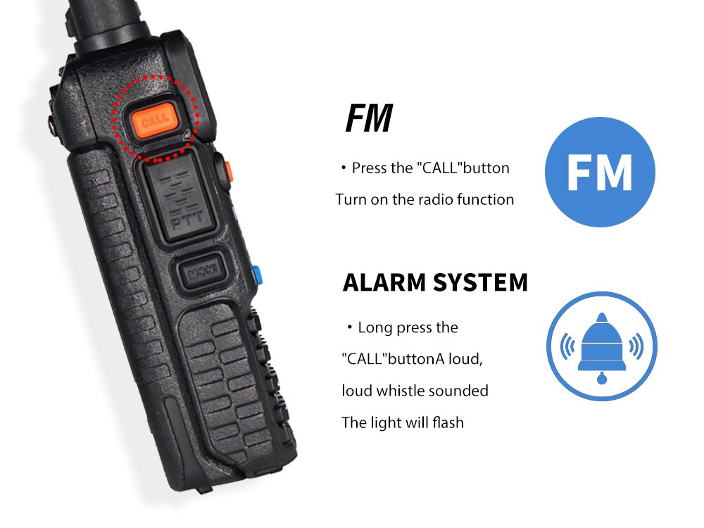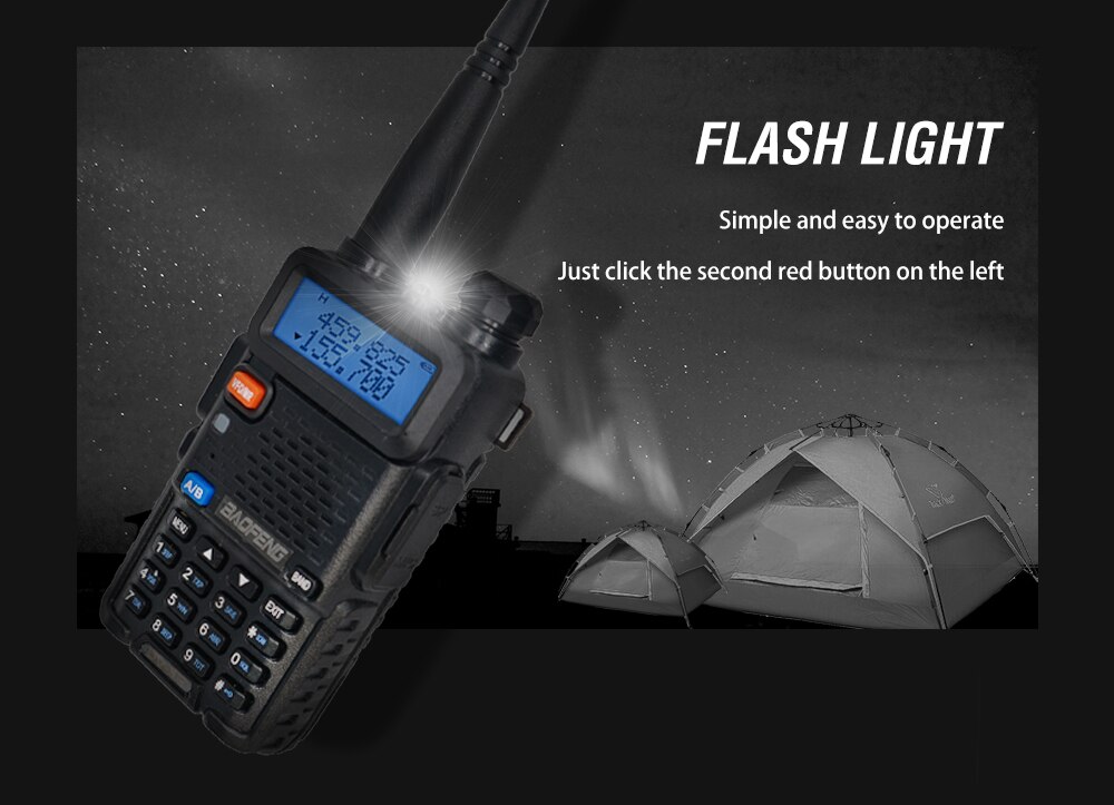 Built-in RX CTCSS/DCS scan, LED flashlight and key lock.