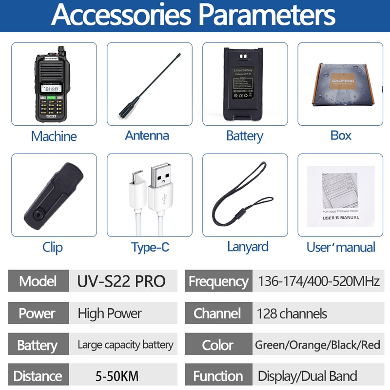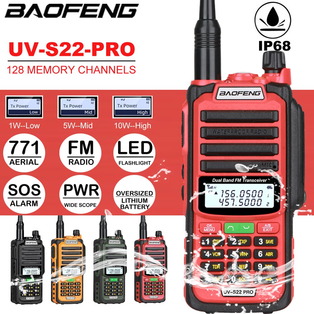 Baofeng UV-S22 PRO IP68 Waterproof 10W Power Walkie Talkie Radio Type-C Charger Powerful UHF VHF Upgrade UV-9R Plus 128CH