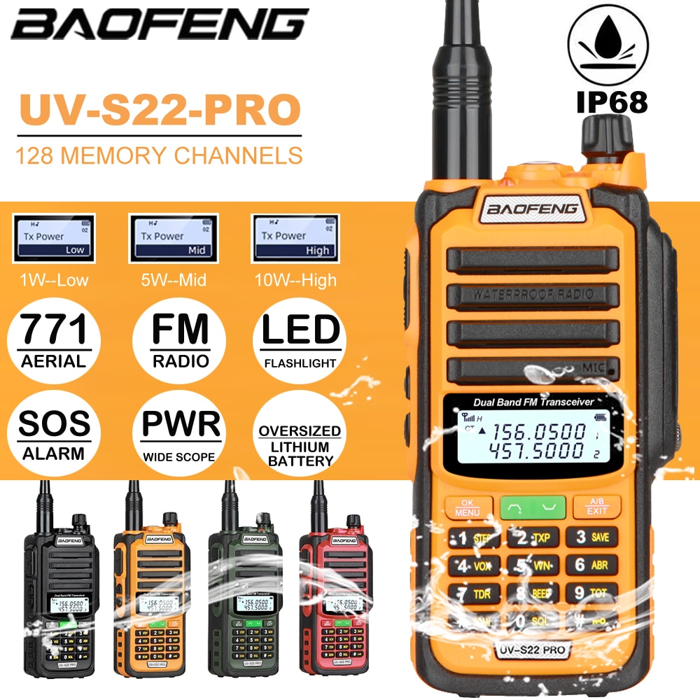 Baofeng UV-S22 PRO Waterproof IP68 Walkie Talkie High Power Two Way Radio VHF UHF 128CH Radio Walkie Talkie FM Radio
