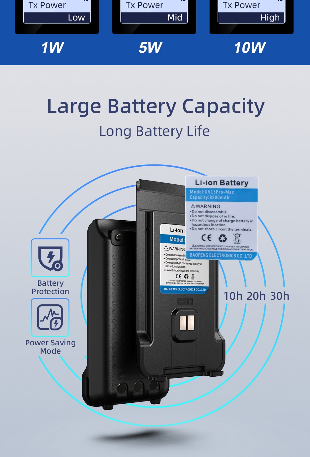2023 Baofeng UV15 PRO Max Walkie Talkie Profesional Tri-Power True 10W High Power 999 Channel Dual Band UHF VHF Radios Transmitter Type-c Fast Charger Upgrade of UV-5R UV-10R Two Way Radio Long Range