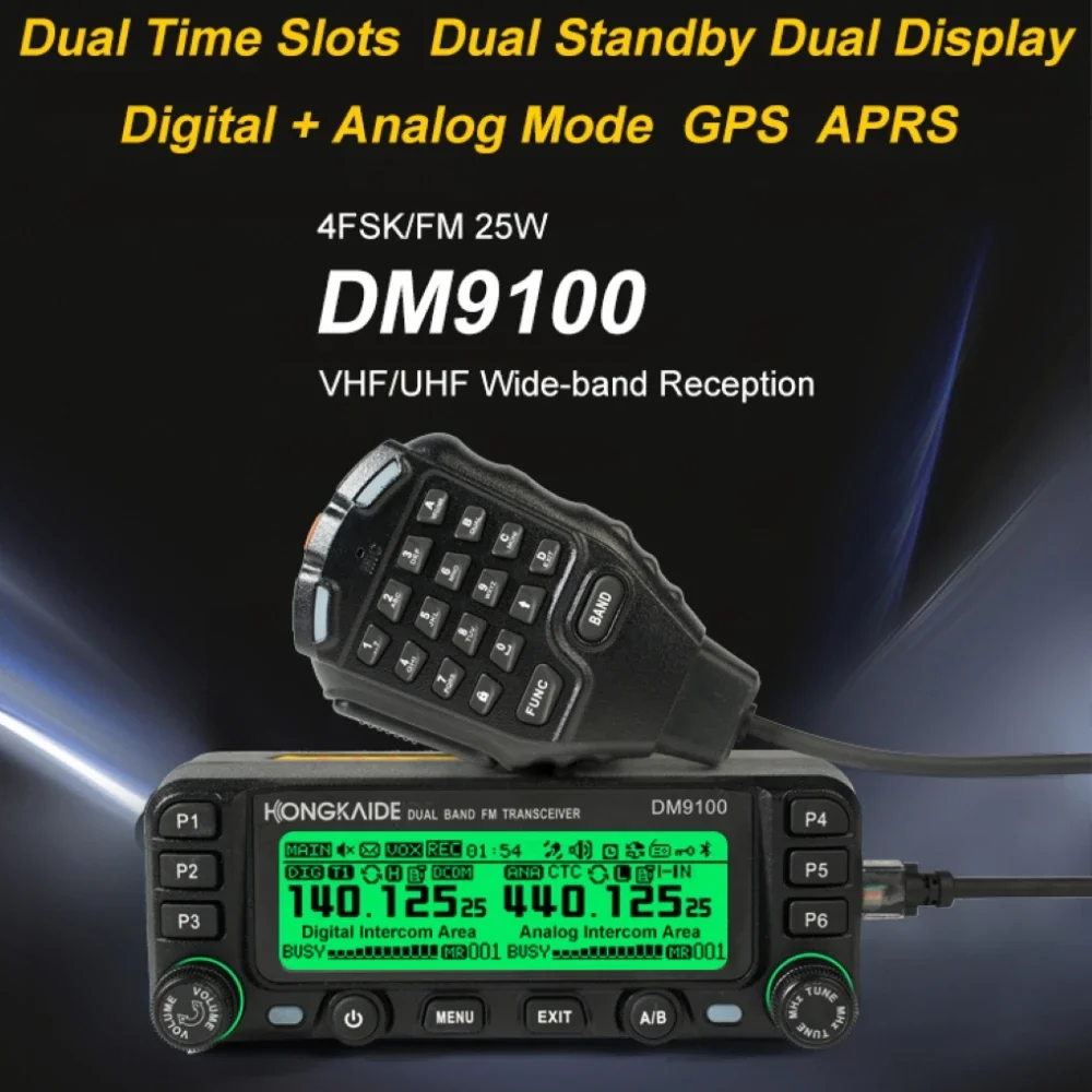 DM9100 25W 4FSK/FM VHF/UHF Wide-band Reception Dual Time Slots Dual Standby Dual Display Digital + Analog Mode GPS APRS
