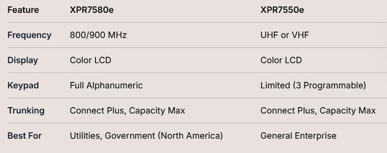 XPR7580e (800/900 MHz) vs XPR7550e (UHF/VHF)