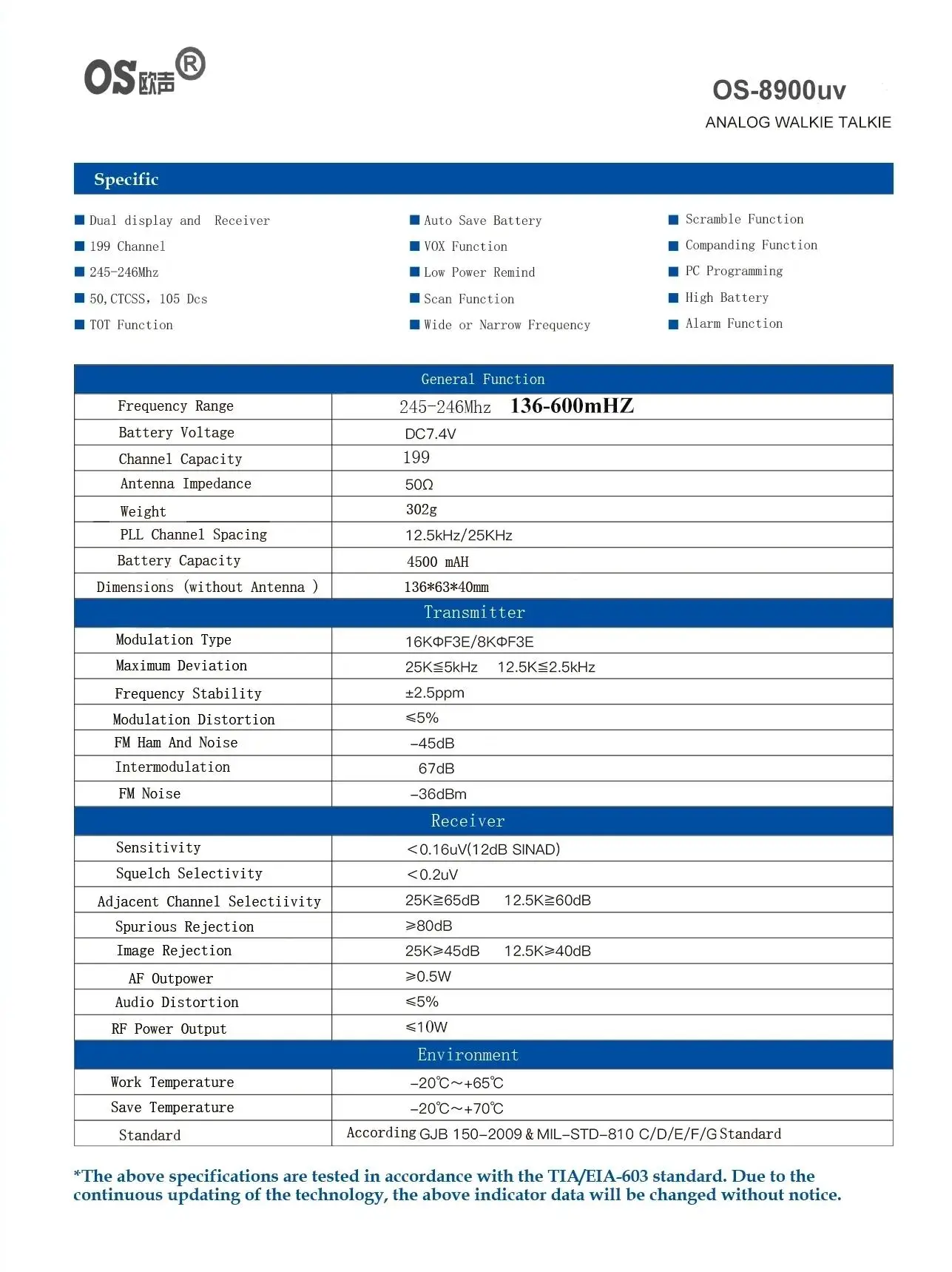 Full Band Walkie Talkie OS-DMR 8900UV Type-C Charger Long Range Two Way Radio 10W 199CH Noise Reduction DTMF Emergency Ham Radio
