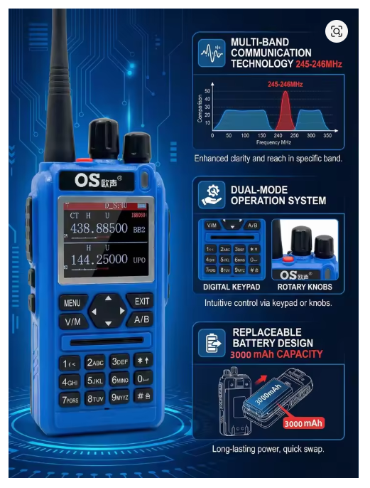 / Full Band Walkie Talkie OS-DMR 8900UV Type-C Charger Long Range Two Way Radio 10W 199CH Noise Reduction DTMF Emergency Ham Radio