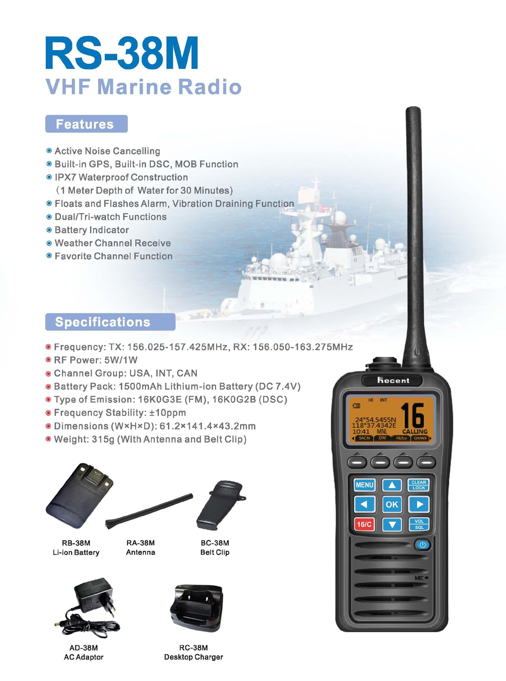 Recent RS-38M Marine Radio VHF IP67 Waterproof Float Walkie Talkie Tri-watch 156.025-157.425MHz Transceiver Two Way Radio
