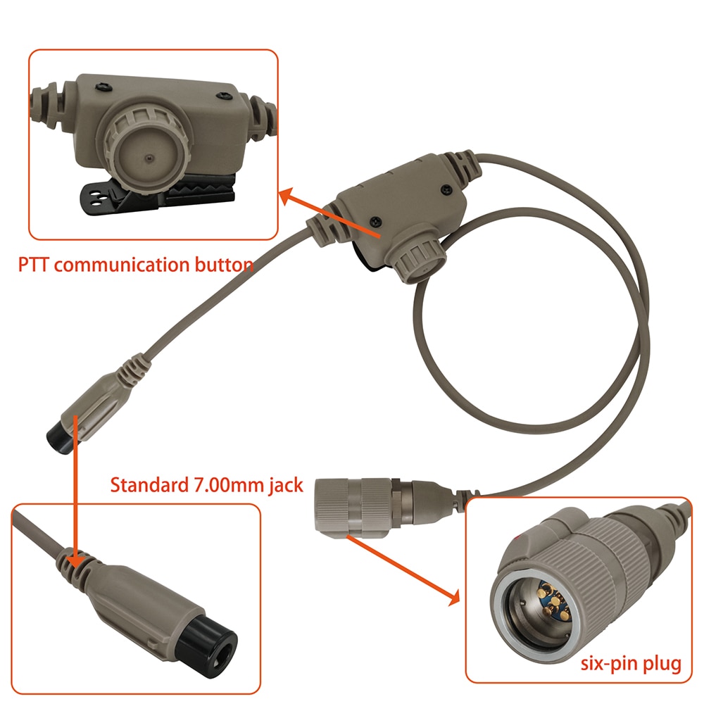 RAC 6-pin ptt compatible with tactical headsets with 7.00mm plugs and prc152, prc148 and other walkie-talkie 6pin interface devices.
