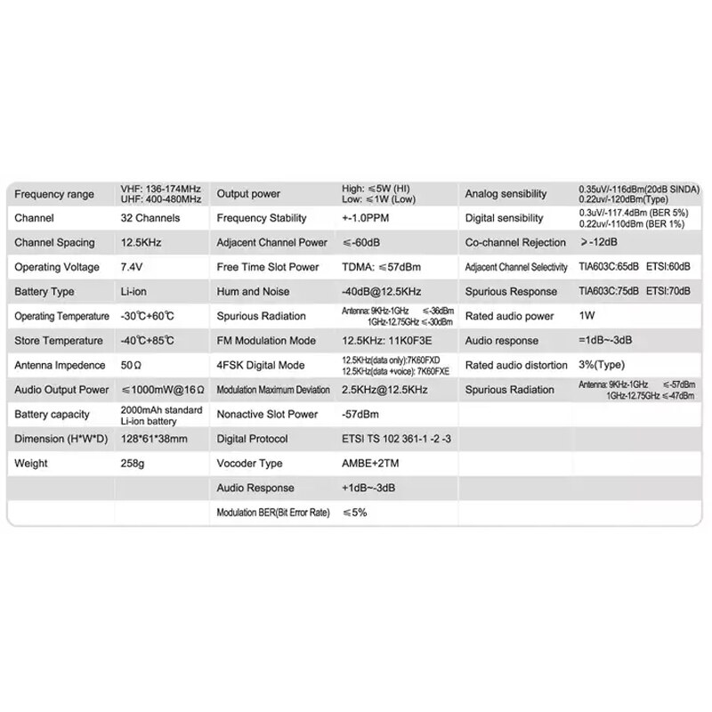 •  Built in CTCSS/CDS