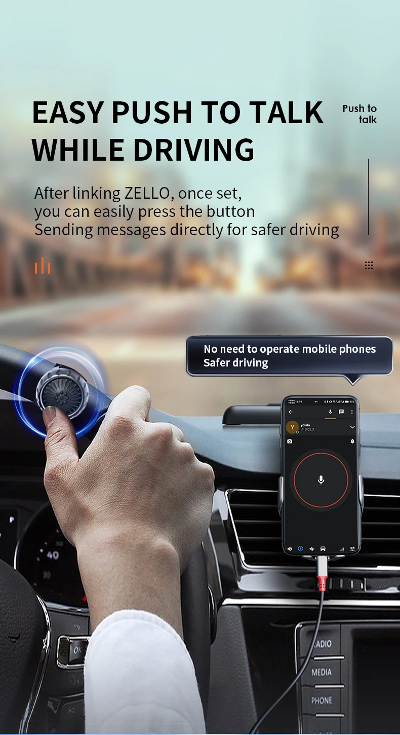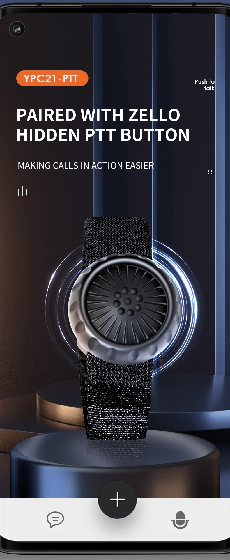 YPC21 PTT Button was designed specifically for the Zello PTT application.Mini & Portable, adjustable magic strap for mounting on bicycle or motorbike handlebars, or on the steering wheel of a car. Voice transmission at the touch of a button.