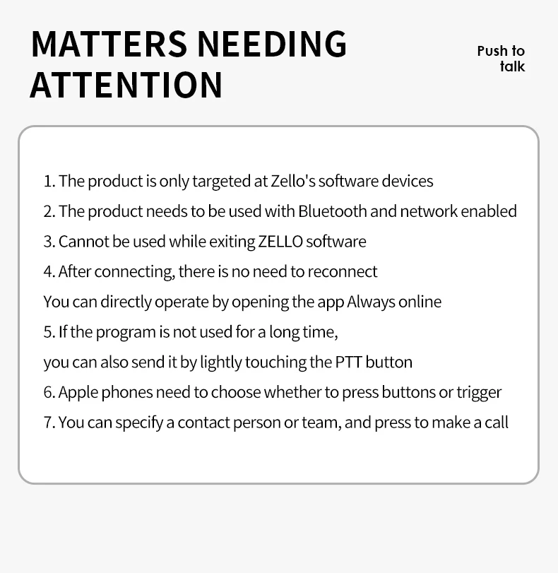 Please note:It is only used on the ZELLO app,can not connect the Mobile phone.Do not use the Bluetooth to search it