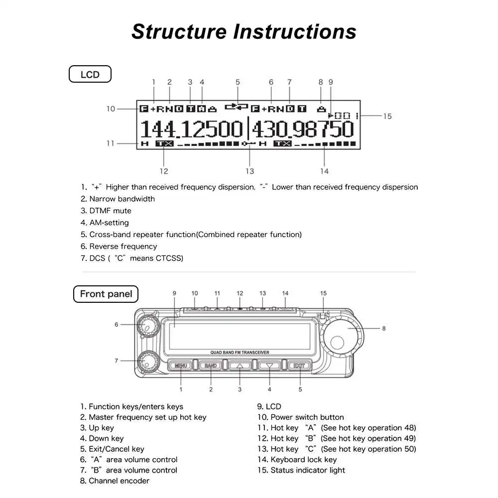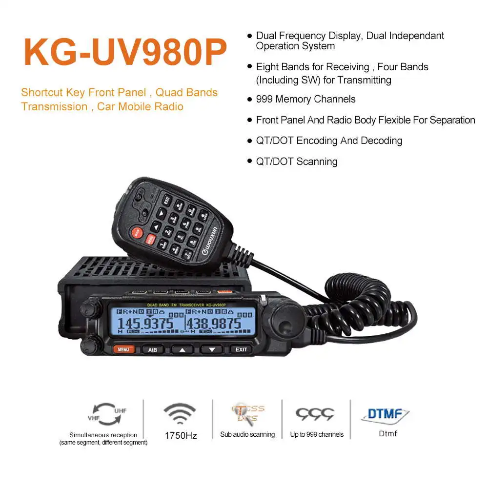 WOUXUN KG-UV980P 50W Quad Band Mobile Radio VHF & UHF Air Band Receiving Cross Band Repeater Car Walkie Talkie