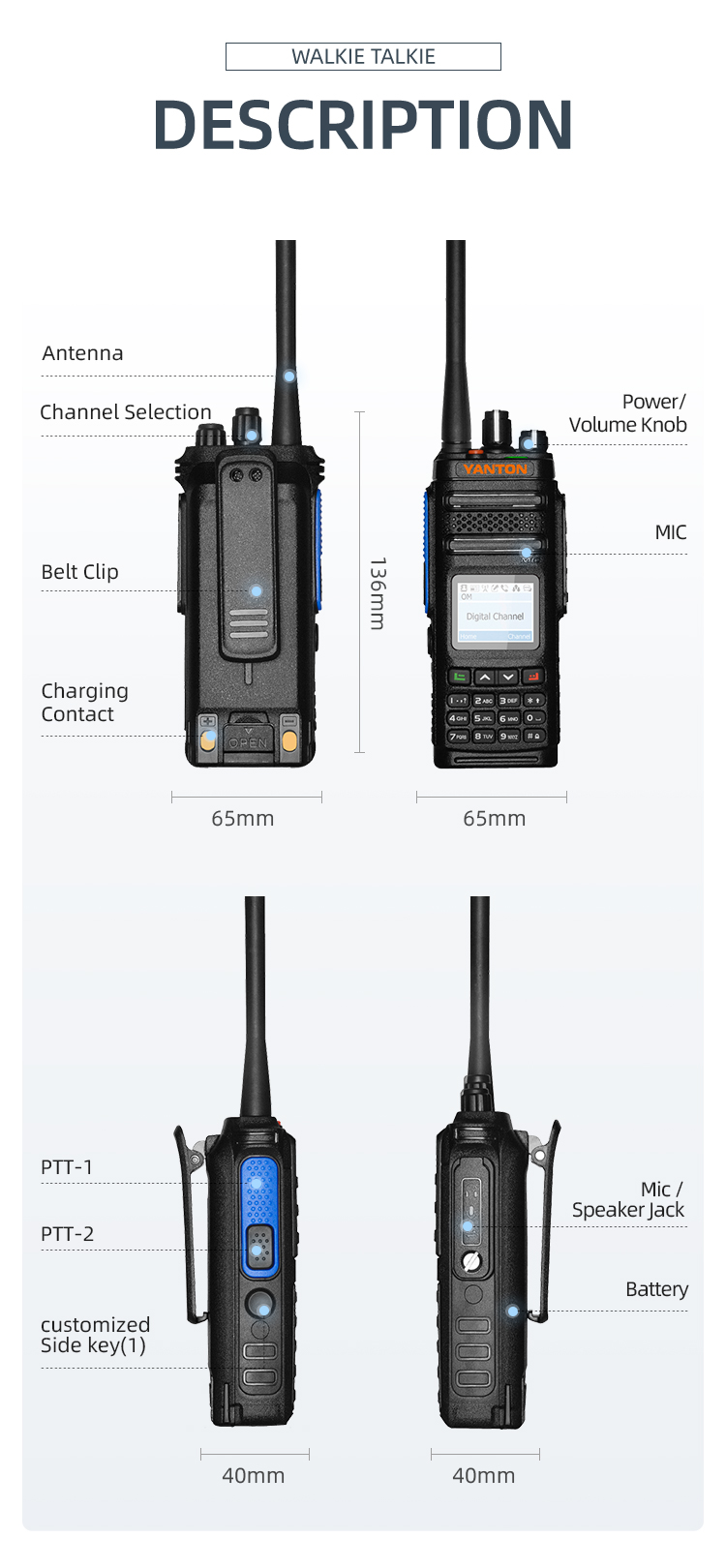 YANTON DM-860 DMR Digital Handy Talky High Power 10W Radio Long Range Two Way Radio Wireless Walkie Talkie