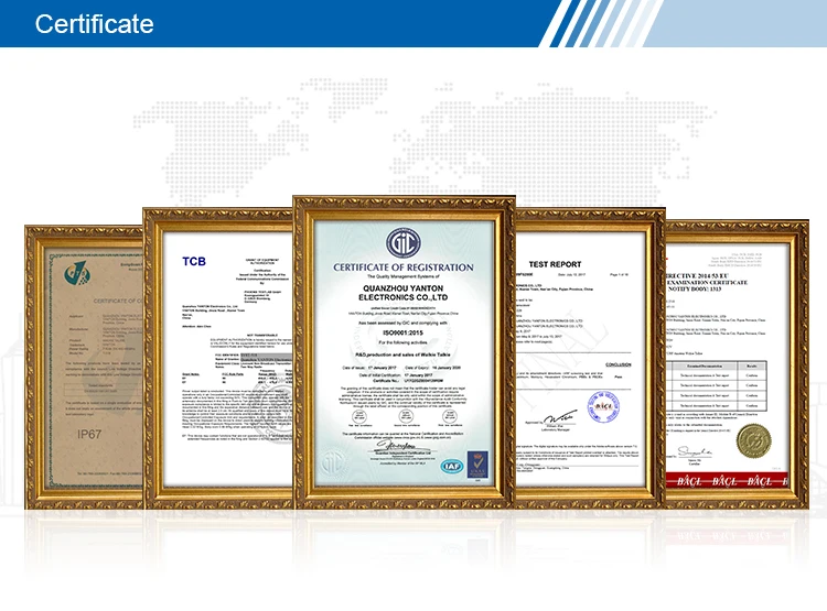 Quanzhou YANTON Electronics Co., Ltd. is founded in the year of 2009, which is a professional wireless communication equipment manufacturer integrates with R&D, production, sales, service and technological innovation strength. Our products cover POC radio, DMR radio, analog radio and so on. With more than 7,000 square meters, YANTON has brought in advanced production equipment, testing instruments, standardized production workshops, well-equipped product laboratories and R&D offices. Our company has introduced the ERP management system and passed the ISO9001:2015 Quality Management System Certification. Also we use the components from TOSHIBA, ST, NEC etc. to guarantee the quality of the products. Our products have been passed the model approval by Ministry of Information Industry,also European CE RoHS and USA FCC. At present, our products have been sold to more than 58 countries such as Europe, the United States, Canada, Russia etc., and appraised highly by the customers.