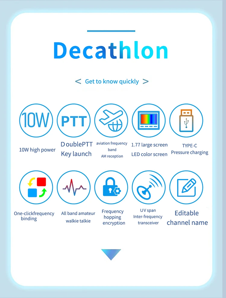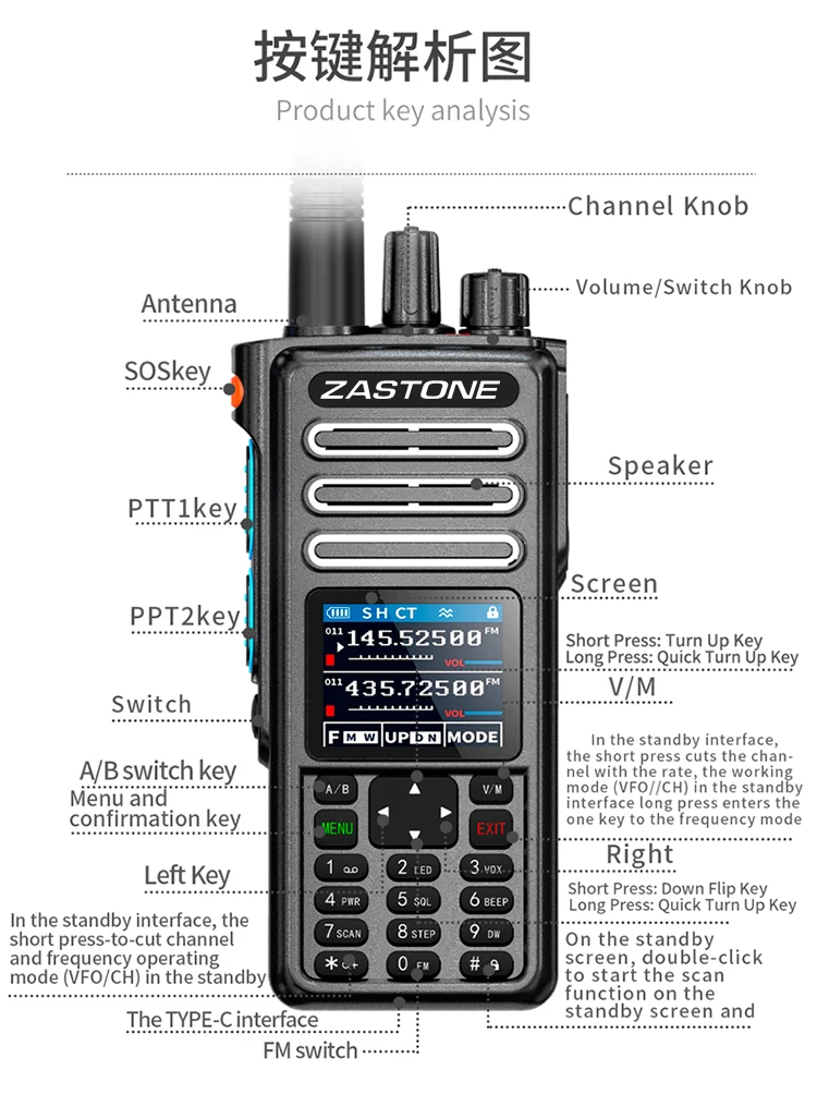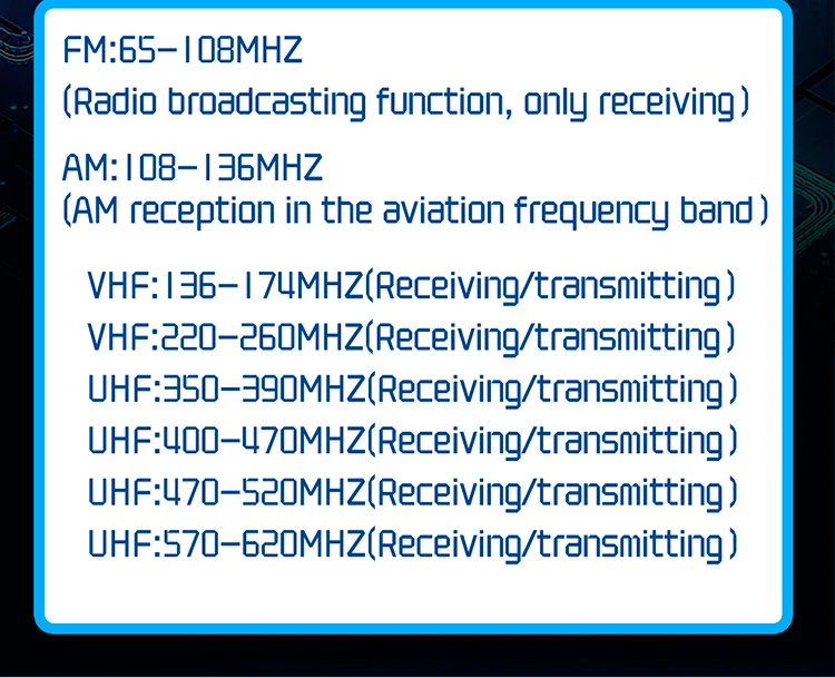 • Scanner functions: VFO scanning range setting, three scanning recovery methods, channel scanning, CTC/DCS scanning, scanning channel addition and deletion