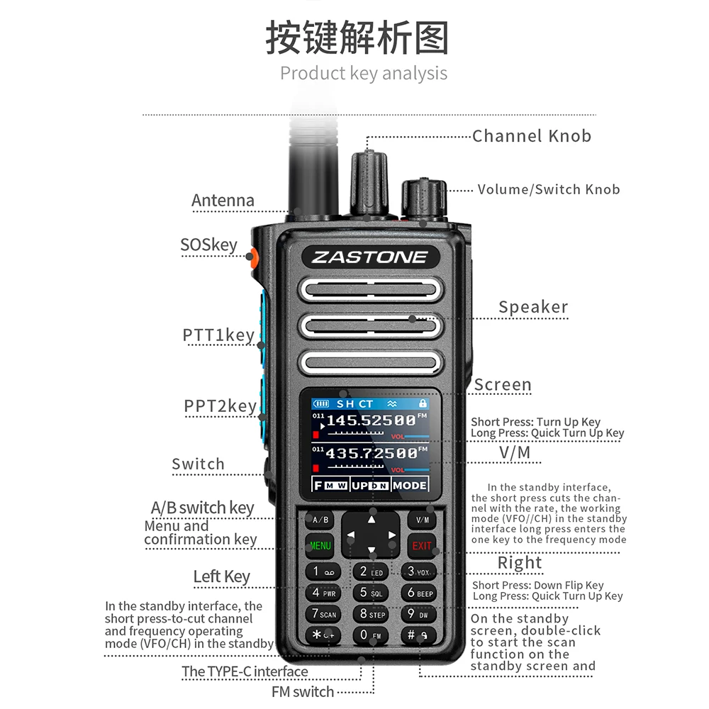 ZASTONE M9 10W Walkie Talkie Ham Amateur 2 Way Radio AM Air Aviation Band High Power Walkie-Talkie CTCSS FM Radio